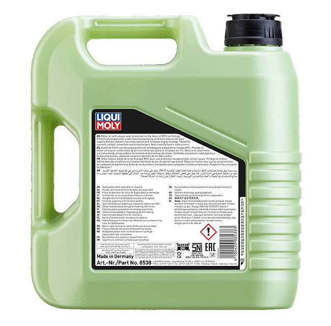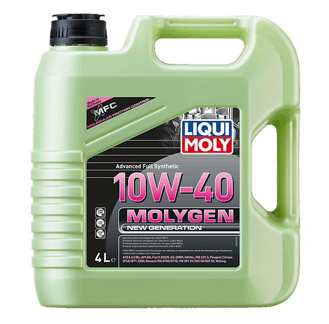Aceite de motor antifricción de alta tecnología con baja viscosidad y alta estabilidad al cizallamiento. Combinado con tecnología de aditivos innovadora y el aditivo especial Molygen. Evita con seguridad la formación de depósitos, reduce la pérdida de potencia del motor por rozamiento y protege de forma óptima contra el desgaste. De esta forma se reduce el consumo de combustible y se prolonga la vida útil del motor.