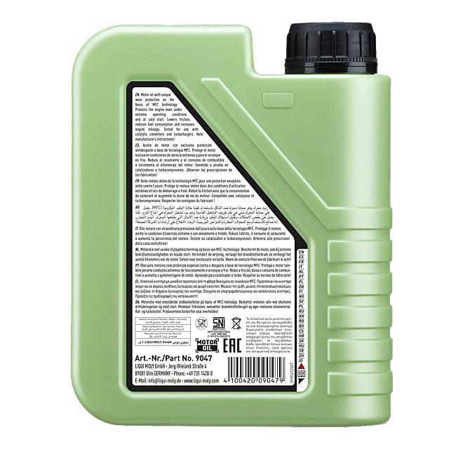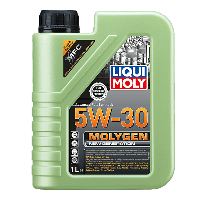 Aceite de motor antifricción de alta tecnología con baja viscosidad y alta estabilidad al cizallamiento. Combinado con tecnología de aditivos innovadora y el aditivo especial Molygen. Evita con seguridad la formación de depósitos, reduce la pérdida de potencia del motor por rozamiento y protege de forma óptima contra el desgaste. De esta forma se reduce el consumo de combustible y se prolonga la vida útil del motor.